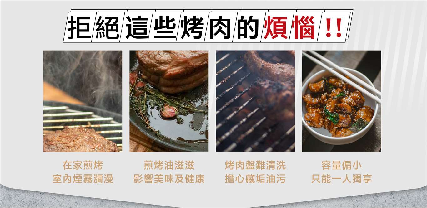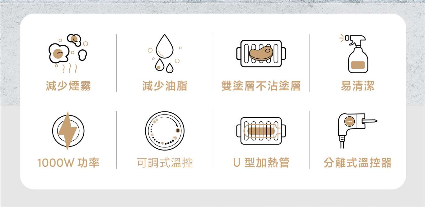 想烤就烤,在家烤肉好Easy 烤盤尺寸30x20cm 三角錐結構導油孔過濾食材油脂和減少煙霧 盛水盤結構,油脂清潔真輕鬆 可調式溫控器:強、中、弱和保溫 使用雙層不沾黏塗層,延長烤盤使用壽命 溫控器可插拔,清潔收納都方便