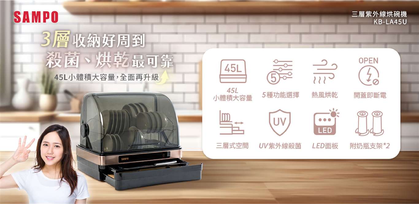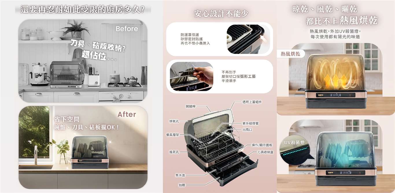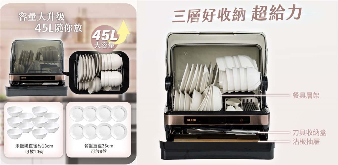 上層碗盤、餐具、奶瓶收納殺菌及烘乾