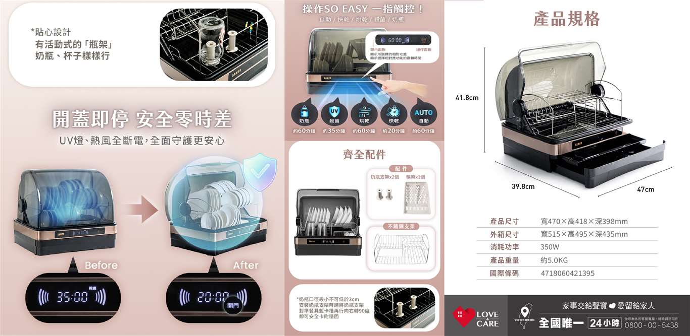 5種功能選擇:自動、快乾、烘乾、殺菌、奶瓶