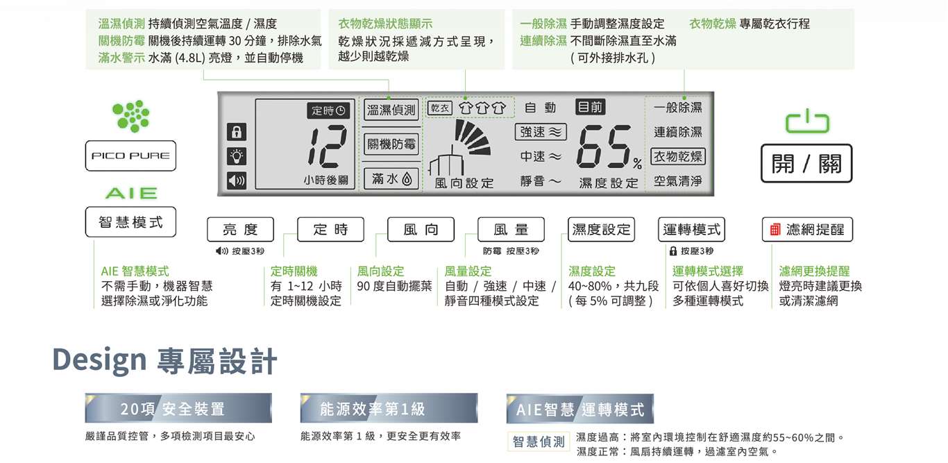 AIE智慧模式,自動轉換除濕、清淨模式