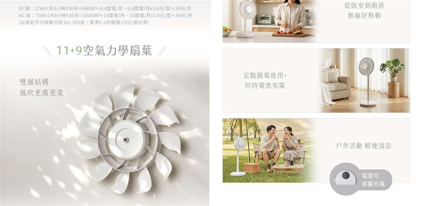 11+9雙層ABS扇葉,風切細膩降噪